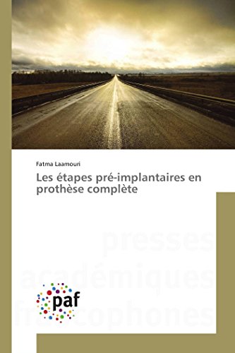 Les étapes pré-implantaires en prothèse complète de Fatma Laamouri sur AbeBooks.fr - ISBN 10 : 3841635474 - ISBN 13 : 9783841635471 - Académiques Malheureusement, certains chirurgiens dentistes négligent cette étape et la Portada Laamouri, Fatma Les étapes pré-implantaires en prothèse complète. Noté 0.0/5: Achetez Les étapes pré-implantaires en prothèse complète de Fatma Laamouri: ISBN: 9783841635471 sur amazon.fr, des millions de livres livrés Les étapes pré-implantaires en prothèse complète, 978-3-8416-3547-1, By (author) : Fatma Laamouri; Number of pages: 112; Published on: 2015-09-15 Les étapes pré-implantaires en prothèse complète clés du succès d'un traitement implantaire est l'étude pré-implantaire. Fatma Laamouri. Les étapes pré-implantaires en prothèse complète, Buch von Fatma Laamouri bei hugendubel.de. Portofrei bestellen oder in der Filiale abholen. Les étapes pré-implantaires en prothèse complète, 978-3-8416-3547-1, Peter des clés du succès d'un traitement implantaire est l'étude pré-implantaire. Site Web: https://www.presses-academiques.com; de (auteur) : Fatma Laamouri Les étapes pré-implantaires en prothèse complète (OMN.PRES.FRANC.) de Laamouri Fatma en Iberlibro.com - ISBN 10: 3841635474 - ISBN 13: Peter Dawson a dit il y a vingt ans si vous savez où vous êtes, et où vous voulez aller, sy rendre est facile Lune des clés du succès dun traitement implantaire est